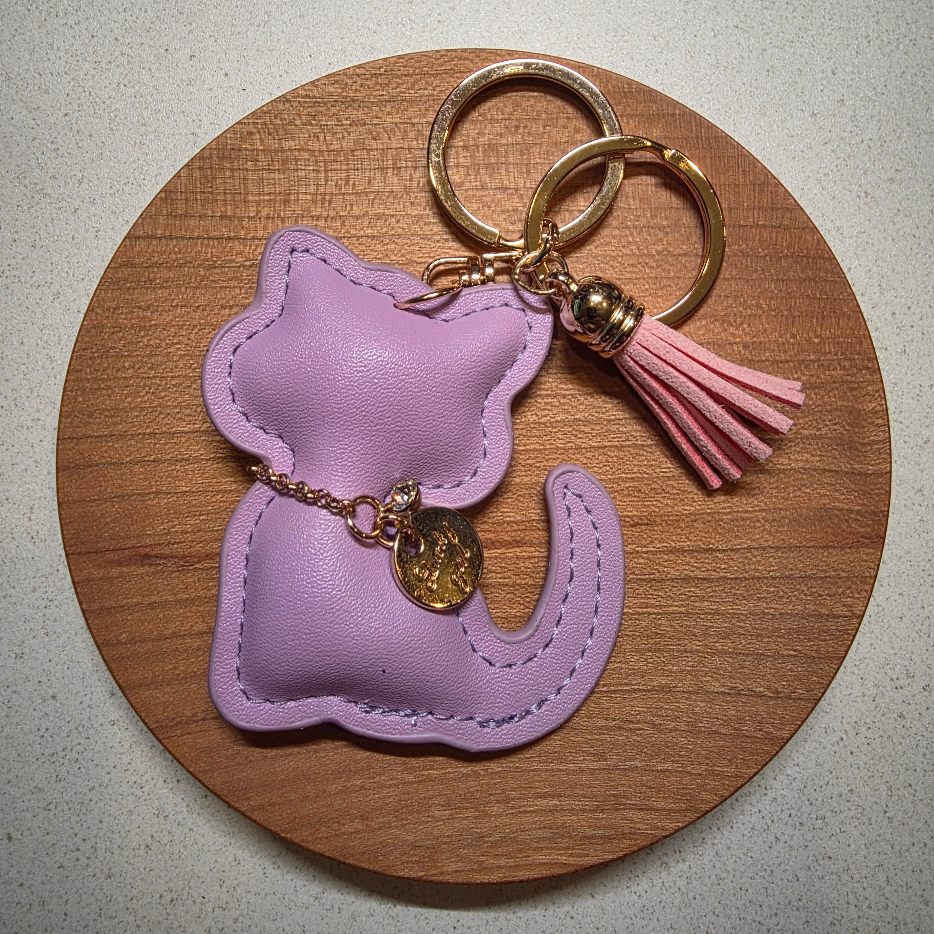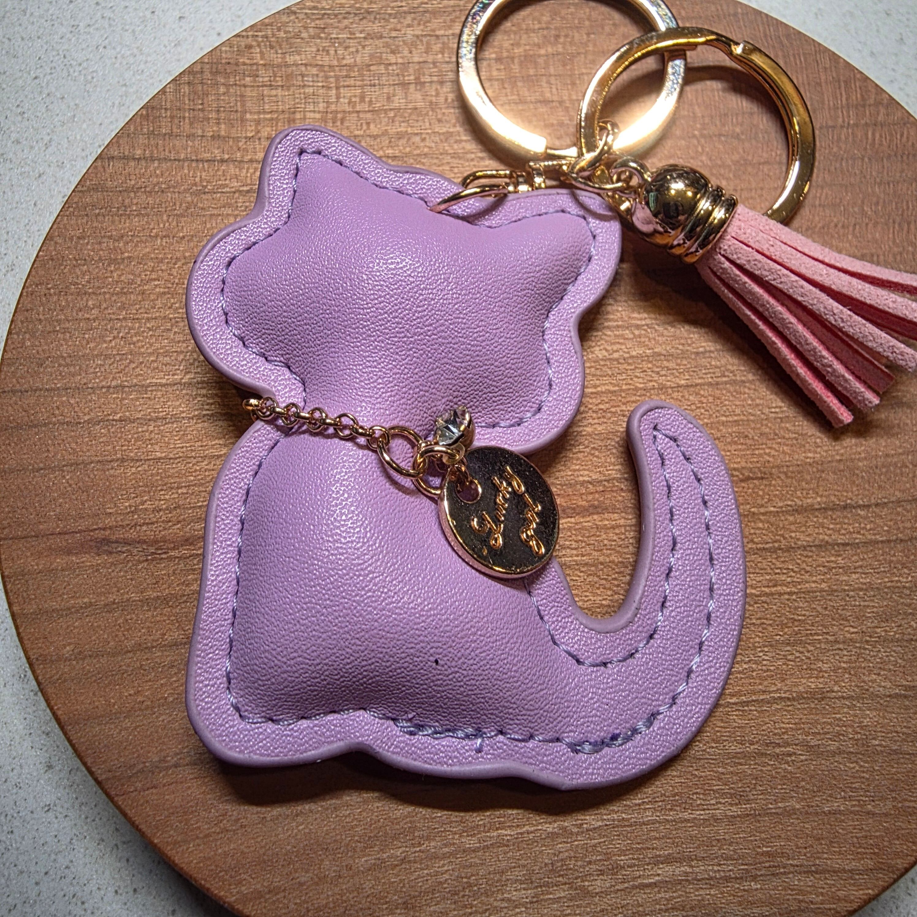 かわいいチャームとタッセルがついたねこバッグチャーム