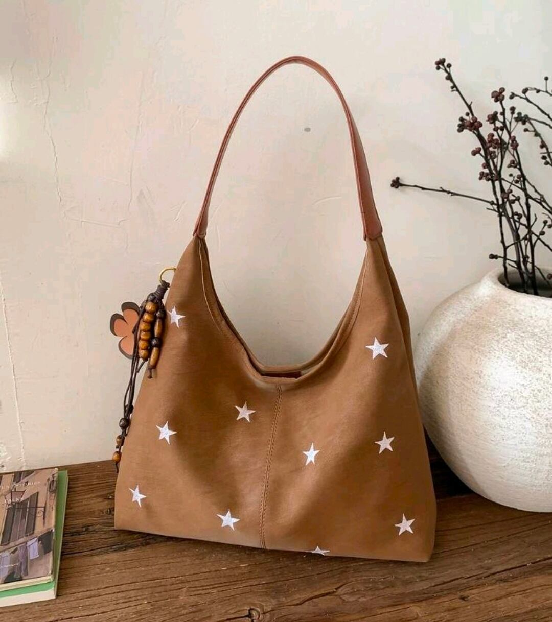 【A4対応】軽量PUレザーの星柄ショルダートート