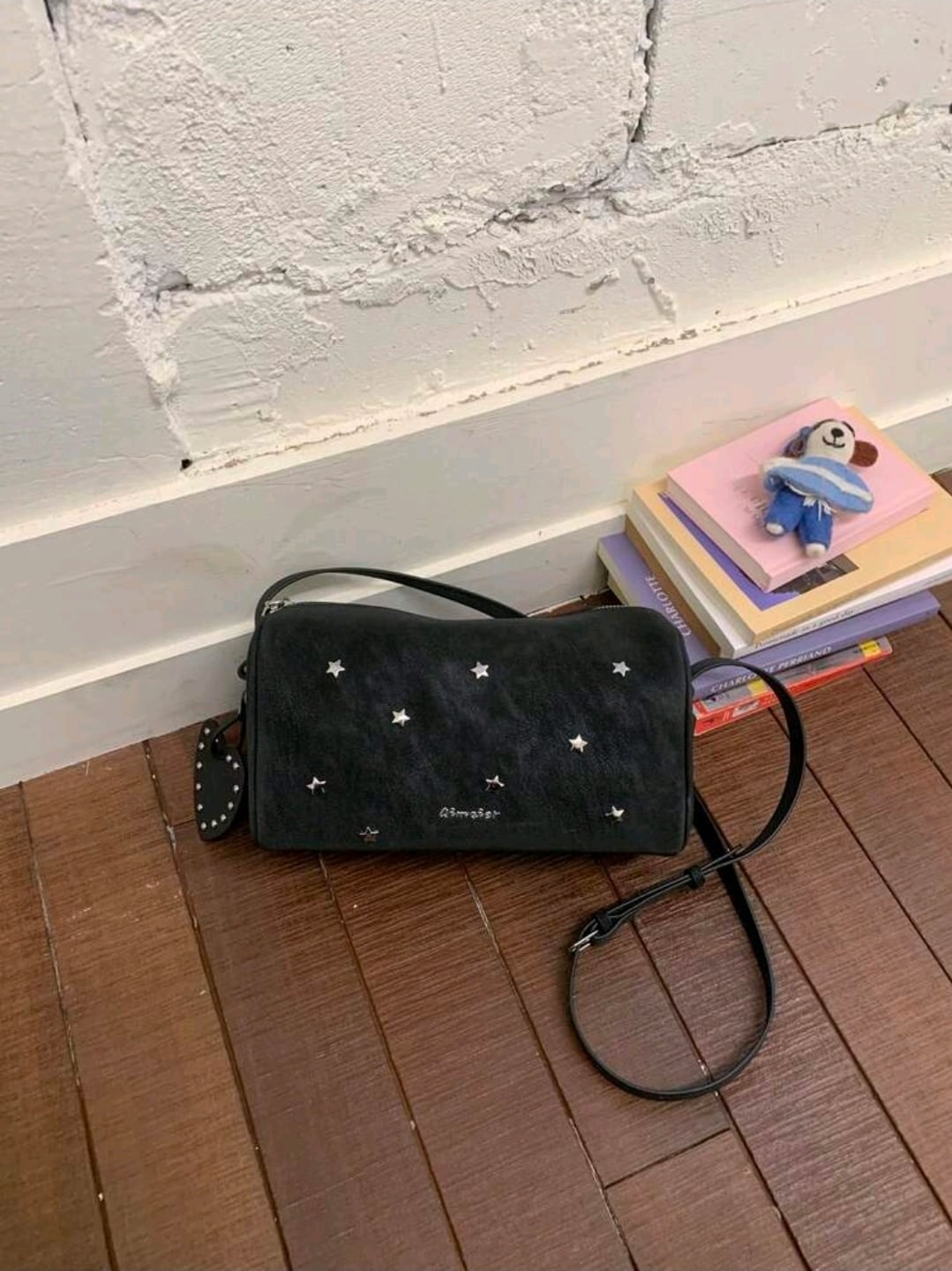 S9. 星スタッズ付 ドラム型ショルダーバッグ |ハートチャームセット