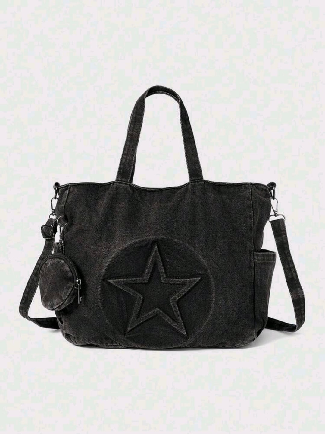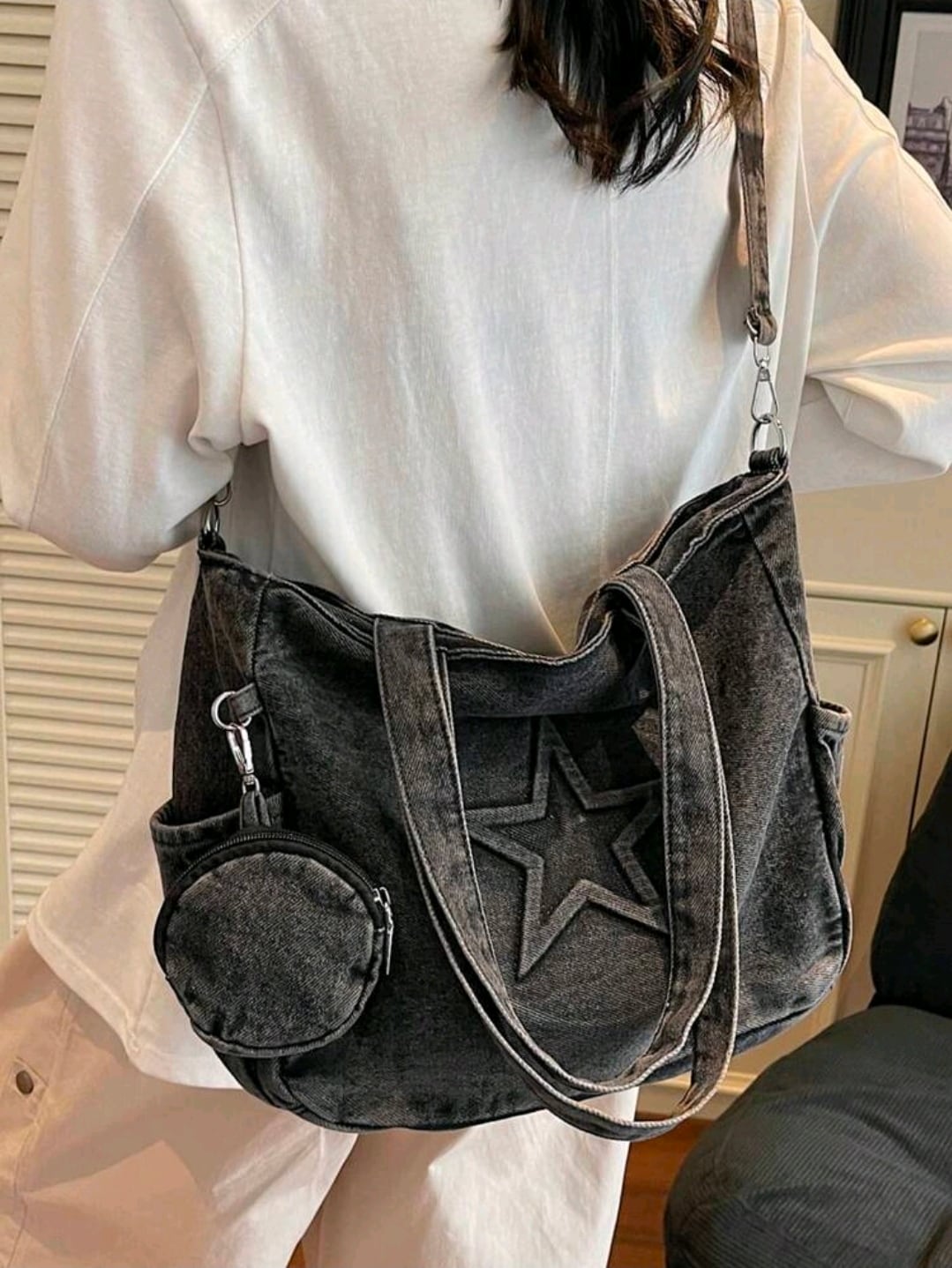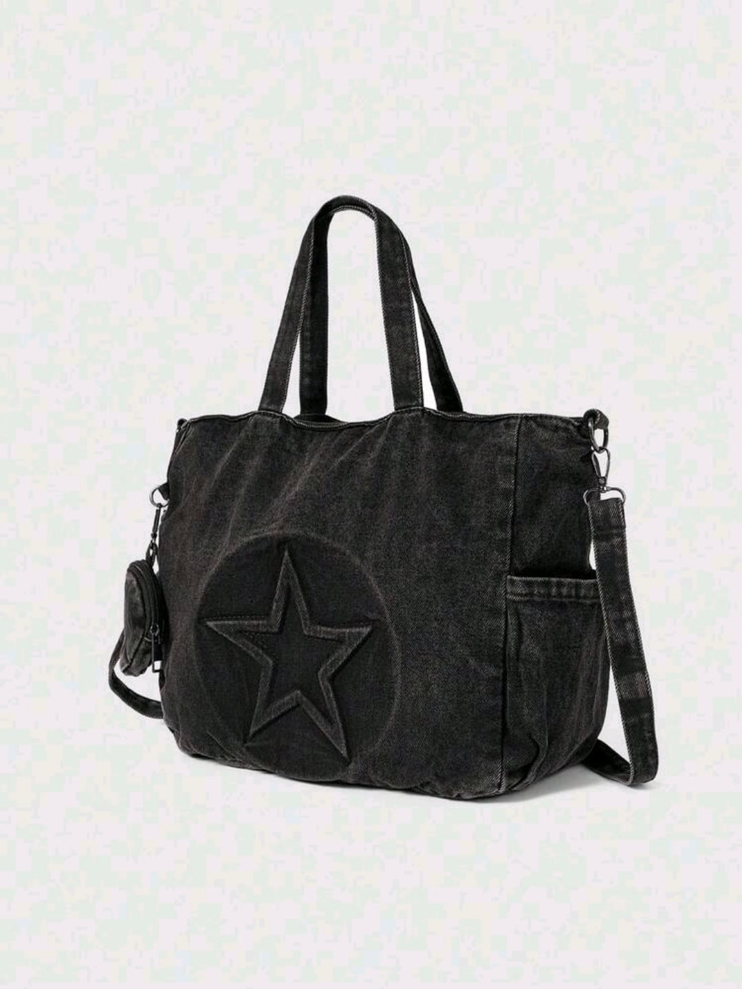 S10.星柄ミニポーチ付き2way トートバッグ デニムブラック