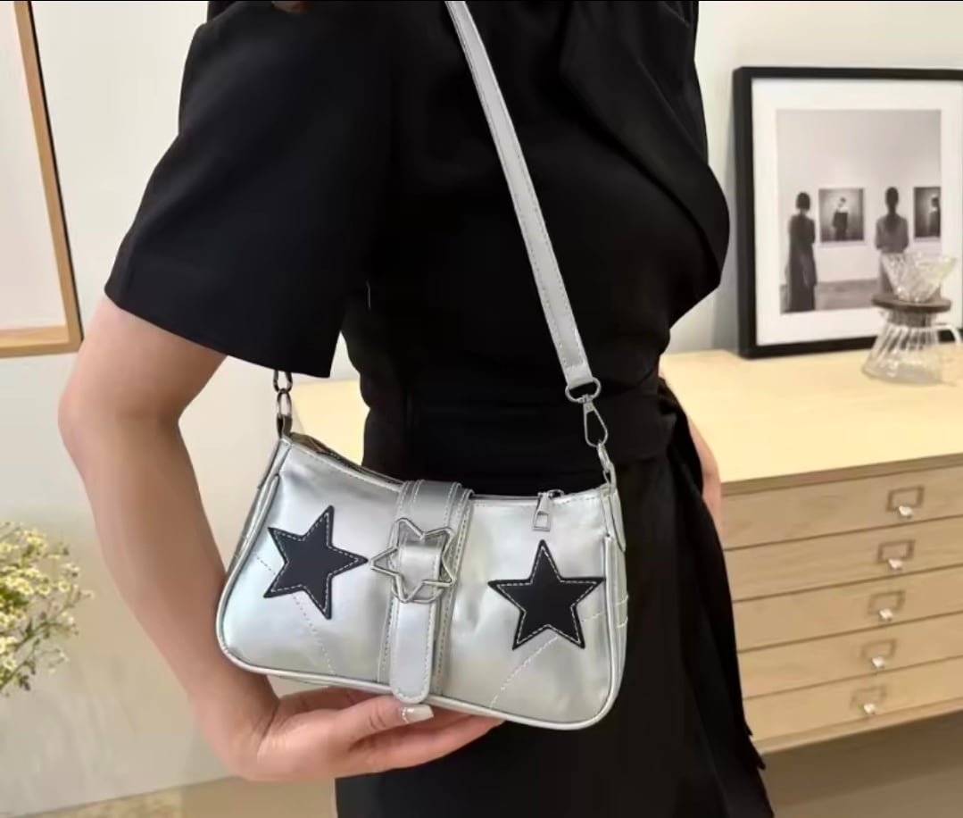 星柄スタッズ Y2Kスターショルダーバッグシルバー
