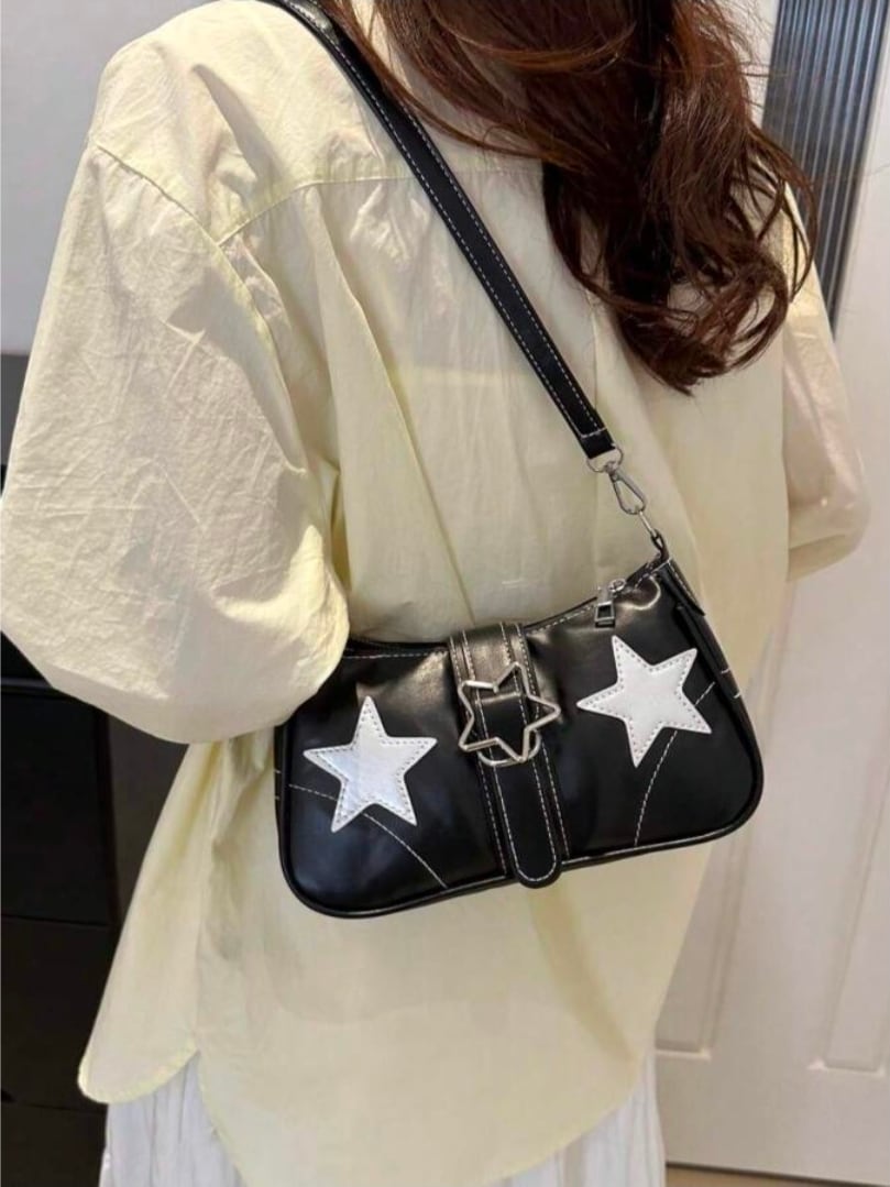 星柄スタッズ Y2Kスターショルダーバッグ ブラック
